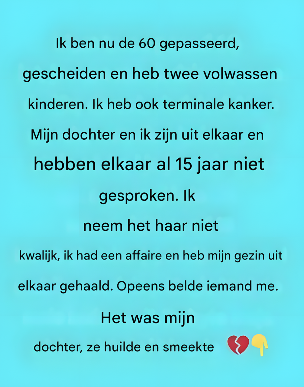 Ik vecht ook tegen vergevorderde kanker. Mijn dochter en ik hebben al 15 jaar niet meer met elkaar gesproken – we zijn het oneens.